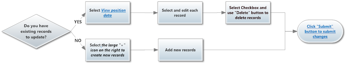 The items highlighted in blue underlined text refer to links on the Data Submission screen
